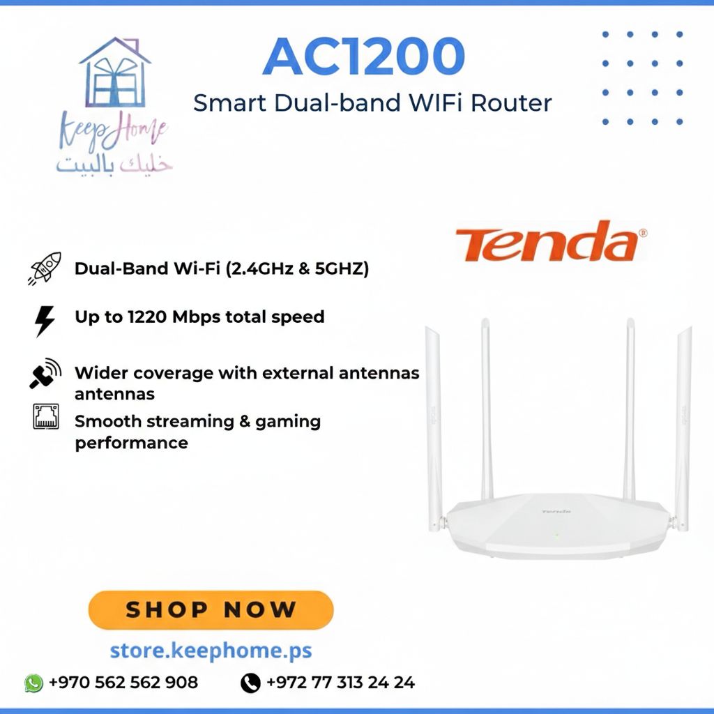 AC1200 Dual Band Router delivering up to 1200Mbps combined speed (300Mbps on 2.4GHz + 867Mbps on 5GHz), powered by IEEE 802.11ac for stable, high-performance wireless connectivity.